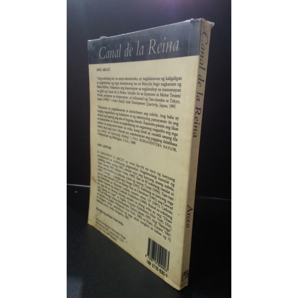 It is a novel that exposes the social cancer in the high levels of contemporary Philippine society. Canal dela Reina ni Liwayway A. Sa pagdating ng isang malakas na bagyo nagkaroon naman ng di-inaasahang malawakang pagbaha sa Gitnang Luzon na siyang sumira sa Canal de la Reina at lumimas sa ari-arian ng mga tao rito kabilang na si Nyora Tentay na naging dahilan ng pagkabaliw nito.