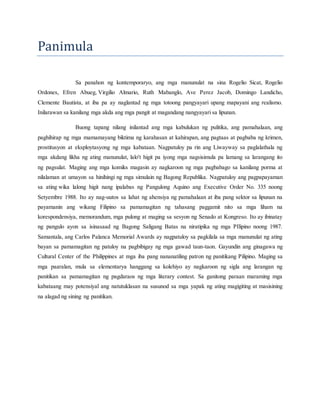 Pagsusuri Sa Panitikang Pilipino Sa Panahon Ng Kontemporaryo